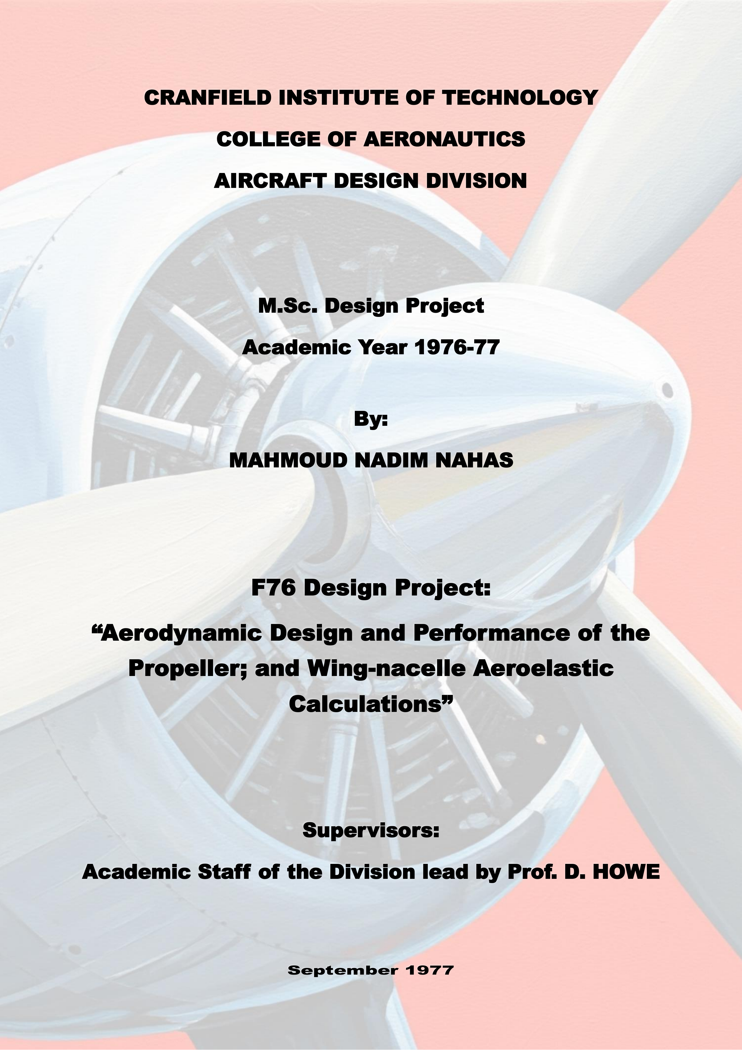F76 Design Project: Aerodynamic Design and Performance of the Propeller; and Wing-nacelle Aeroelastic Calculations